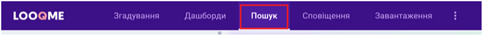 Розділ з пошуком знаходиться на верхній панелі інтерфейсу: